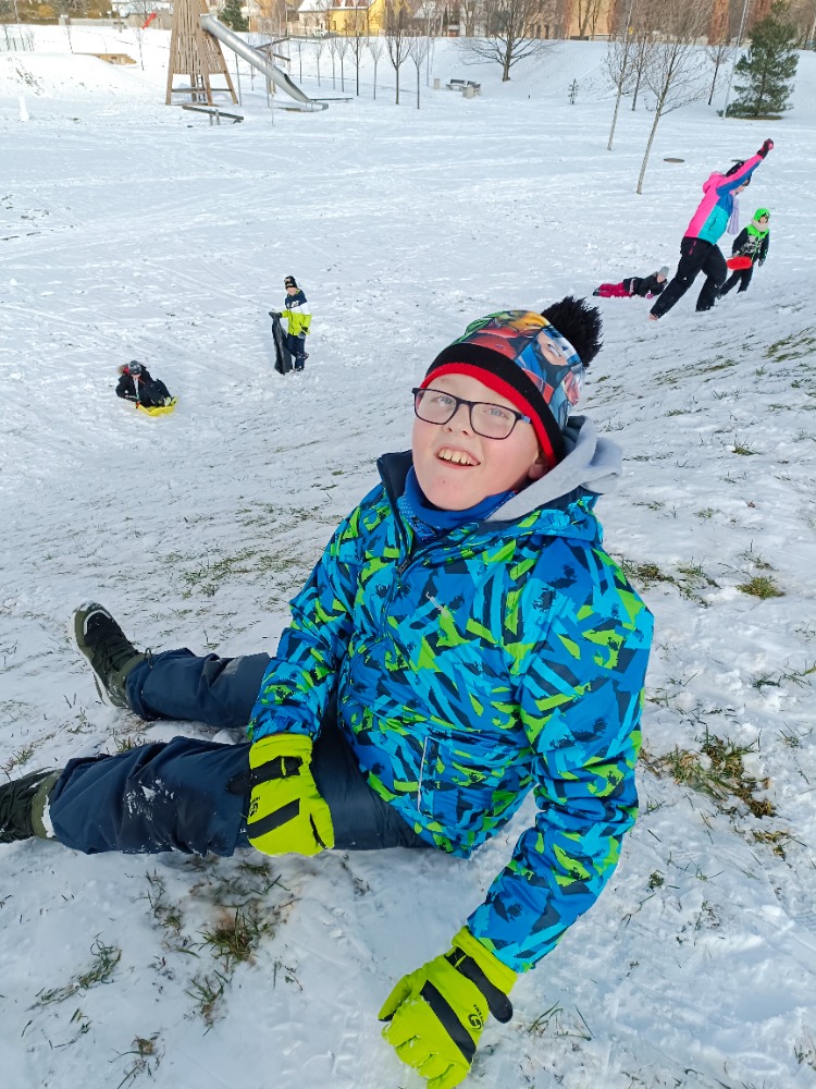 Když jsem minulý týden četla v tematických plánech téma Hrátky na sněhu, přišlo mi to úsměvné, za okny bylo téměř jaro. Víkend nás ale překvapil a nadělil nám konečně sněhovou bílou pokrývku. Nelenili jsme, ještě v neděli jsme se všichni dohodli, že si v pondělí do školy přineseme boby, sáňky, kluzáky a sáňkovací talíře, igelitové pytle a vyrazíme si hrátky na sněhu pořádně užít, než se nám všechen sníh zase rychle ztratí. Povedlo se! Podívejte se na fotografie.