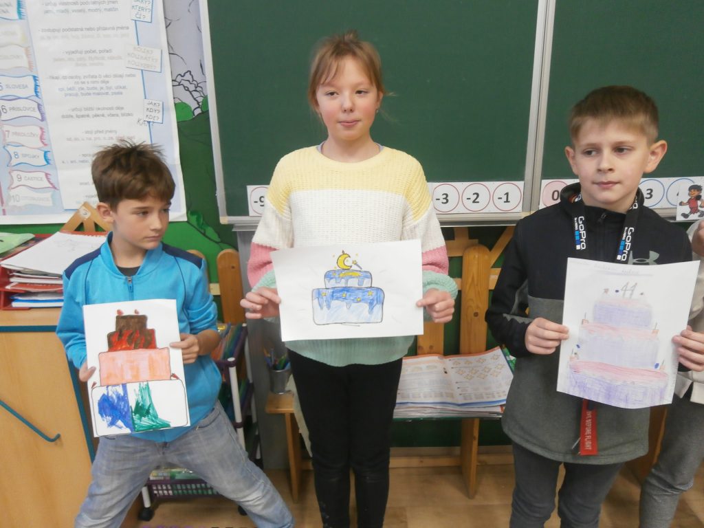 Dnes jsme se učili v kuchyni kouzelníka Alvinuse Stříbrookého, kterému se ztratily všechny recepty. Rozdělili jsme se do týmů a začalo dobrodružství. Skládali jsme tajemný recept, řešili hádanky, počítali na kouzelné váze, luštili šifry a opravovali chyby v recenzi na dort. Za každý splněný úkol jsme získali ingredience, z kterých jsme nakonec uvařili (nakreslili) náš kouzelný dort. Celá týmová soutěž byla omezena na dvě vyučovací hodiny, ale nakonec to všechny týmy stihly a obdržely od paní učitelky sladkou odměnu.