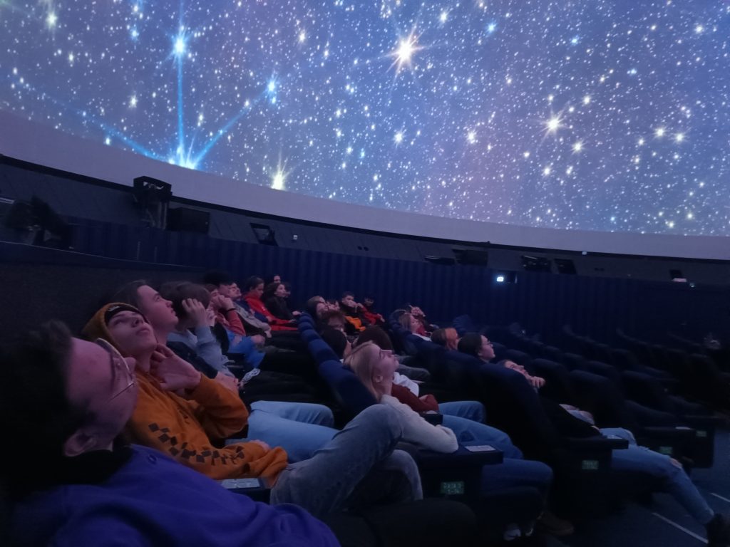 Taky vás zajímá historie naší planety Země a co se skrývá ve hvězdách? Tak to byste měli navštívit pražské planetárium stejně jako to udělala 9.C a 9.B! Rozhodli jsme se vydat 21.11. do Prahy za poznáním. Hned jak jsme vešli do planetária, viděli jsme rakety, souhvězdí a různé jiné věci spojené s vesmírem. Vše bylo interaktivní, takže jsem si vše osahali i vyzkoušeli. Měli jsme domluvenou i přednášku, ale nejen tak ledajakou… Sedli jsme si do velké místnosti podobné kinu, sedačky byly nahnuté tak, abychom skoro leželi a viděli na strop, který byl ve tvaru polokoule. Nad našimi hlavami se promítaly planety, hvězdy a galaxie. Film a přednáška byla o vzniku naší planety. Moc se mi to líbilo! Po zhlédnutí planetária jsme chtěli navštívit i park jménem Stromovka, který je hned vedle. Ale bohužel bylo špatné počasí, pršelo totiž. Cestou zpátky jsme proto zastavili u benzínky spojené s McDonaldem. Dali jsme si svačinku a jeli dál domů. Výlet se nám moc líbil a vřele doporučuji tam zajet.