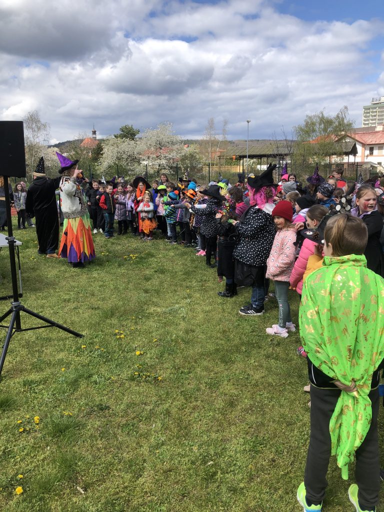 Stalo se již tradicí, že ke konci dubna pořádá školní družina Čarodějnický rej pro děti i rodiče připomínající lidový zvyk spojený s pálením ohňů. Tentokrát k nám zavítala paní Inka Rybářová, zpěvačka a moderátorka realizující zábavné pořady pro děti, a s ní dorazil i klaun Rybička. Odpoledne na školním hřišti, plné soutěží v tanci, zpívání i úpění a strašení, jsme zakončili opékáním špekáčků a vyhlášením nejlepšího tanečníka tohoto odpoledne. Společně jsme si všichni pěkně zařádili a nakonec nám přálo i počasí.