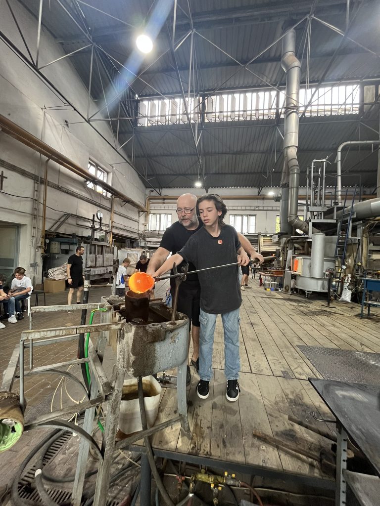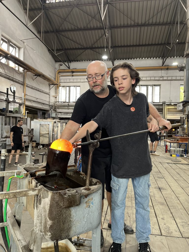 Druhá část naší exkurze byla ještě zajímavější! Zkusili jsme si práci sklářů na vlastní kůži. Nahlédli jsme do pece a za pomoci zkušených, trpělivých a vstřícných sklářů jsme si mohli vyrobit svou vlastní vázičku. Tu jsme si však nemohli odvézt hned domů, protože nám ještě na sklárně musela dozrát.