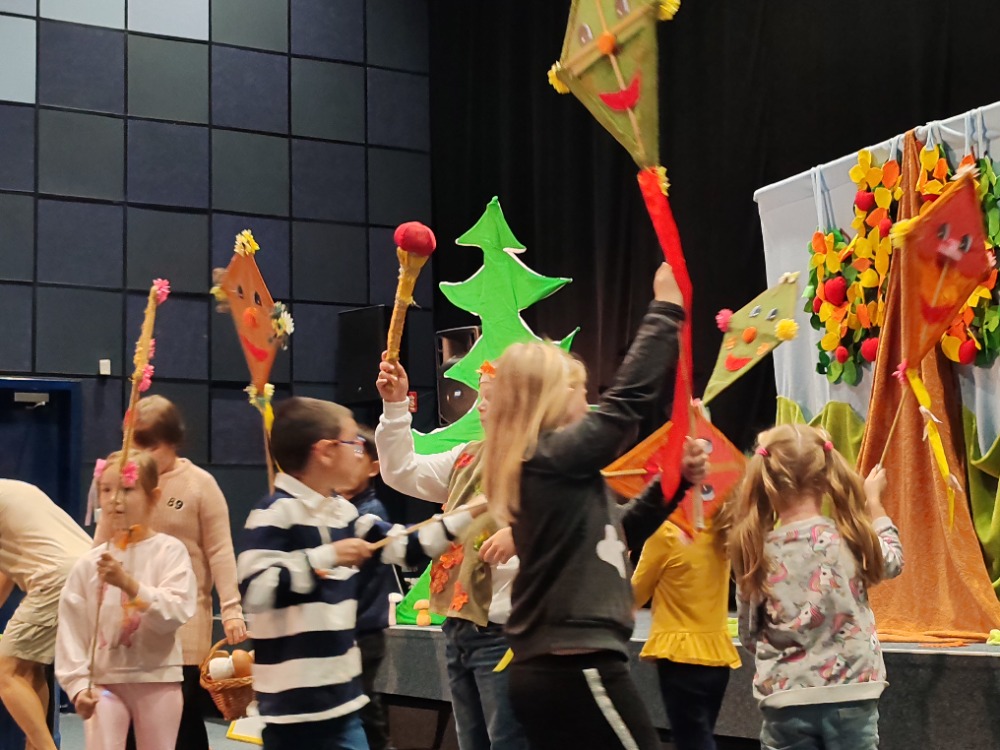 Během představení jsme si povídali a zazpívali o odletu ptáků do teplých krajin, o zvířatech v lese a o podzimním houbaření. Nechyběly ani oblíbené podzimní aktivity jako pouštění draka a společné pečení brambor, které provonělo celé kino.