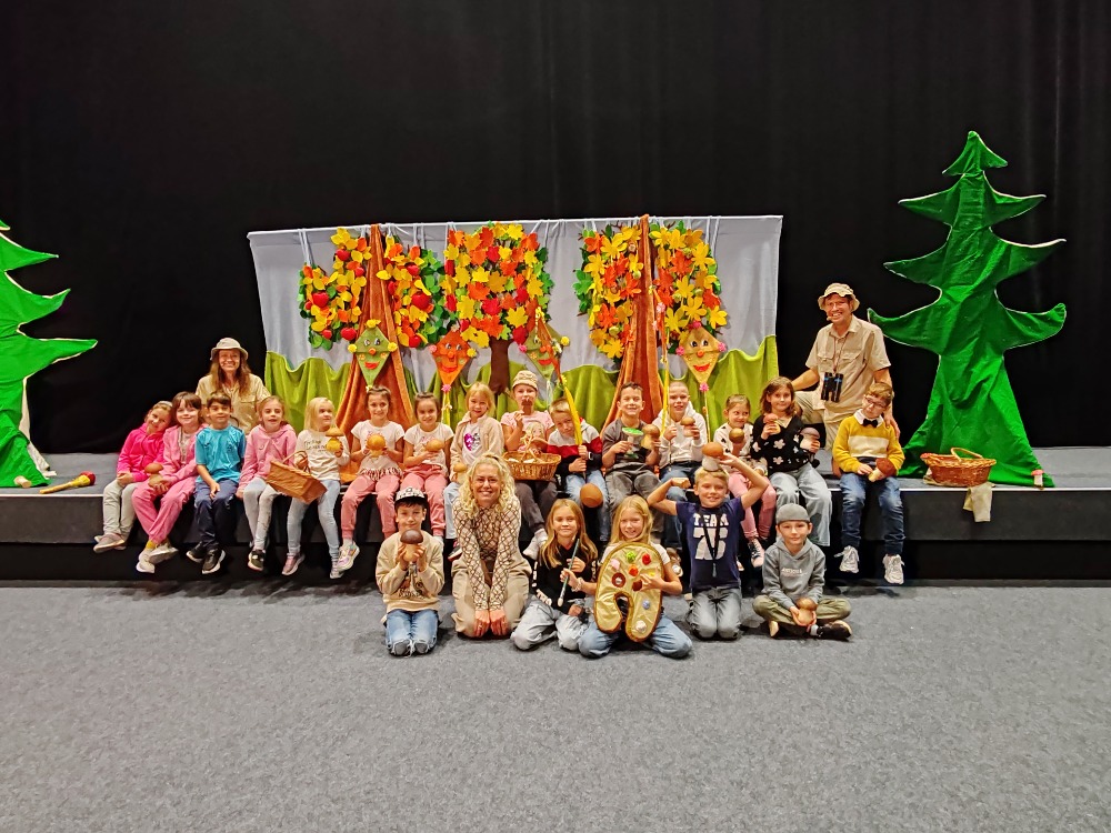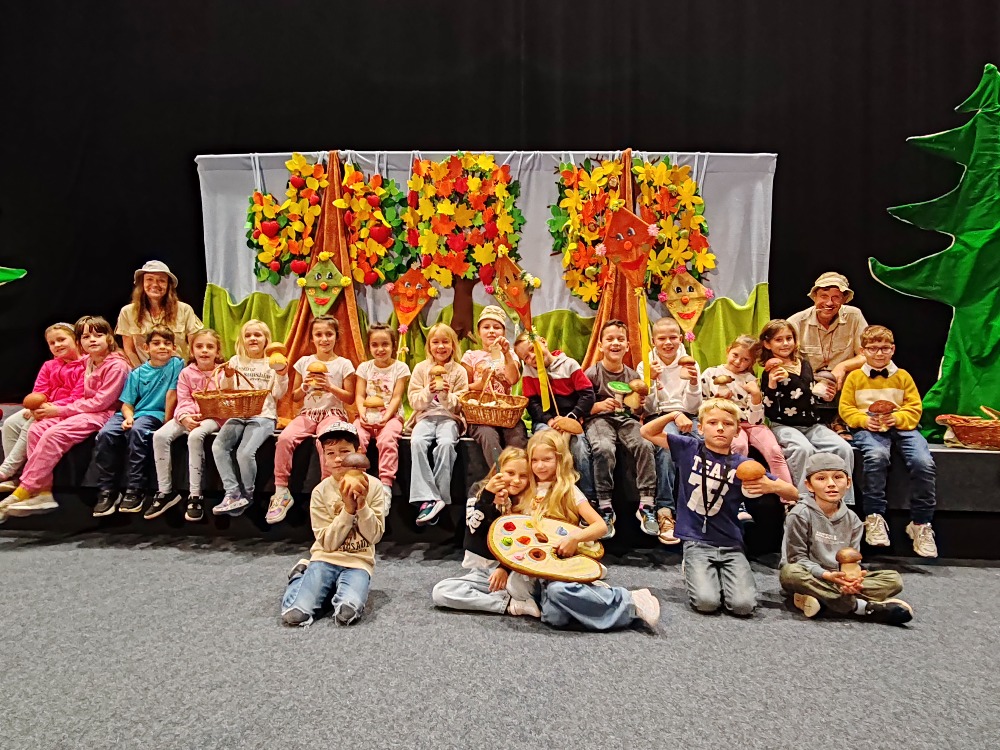 Třída 2. B si užila nádherné podzimní dopoledne plné zážitků, objevování a radosti. Navštívili jsme kino Svět, kde na nás čekalo Divadlo Letadlo a jeho netradiční muzikálové a divadelní představení V korunách stromů. Představení nás poutavou formou provedlo celým obdobím podzimu a doslova nás zvedlo ze židlí, nejen svou originalitou, ale i nádhernou přírodní kulisou. Děti si užily krásné písně, příjemnou atmosféru a dokonce si samy vyzkoušely účinkování na scéně. Byly odvážné, šikovné a nadšené!