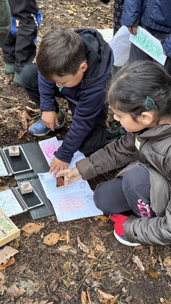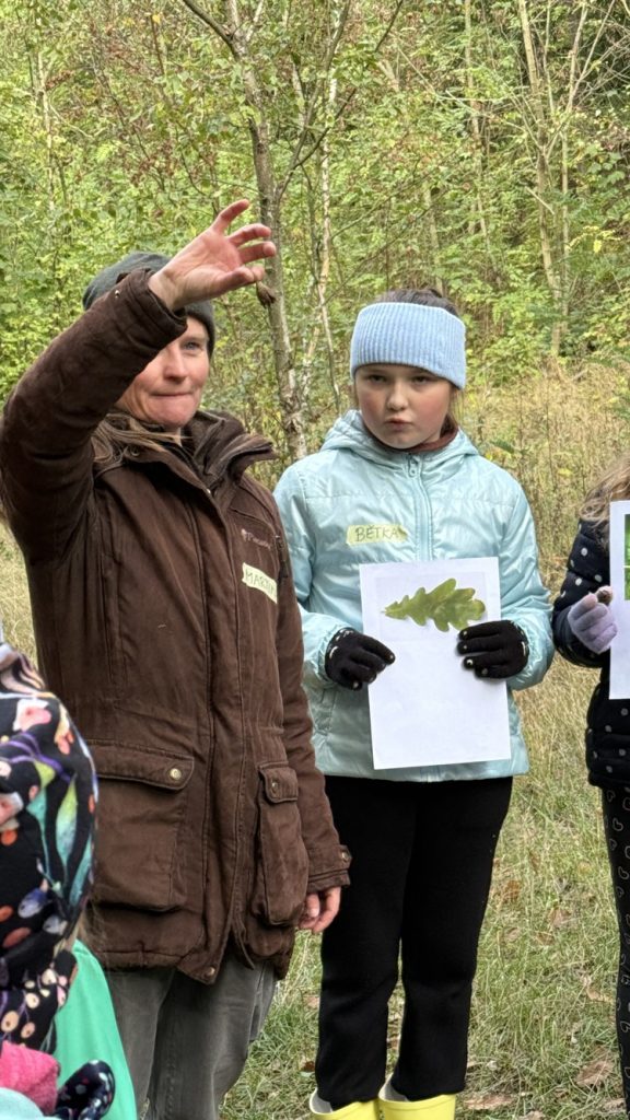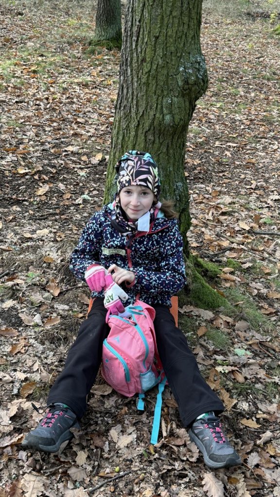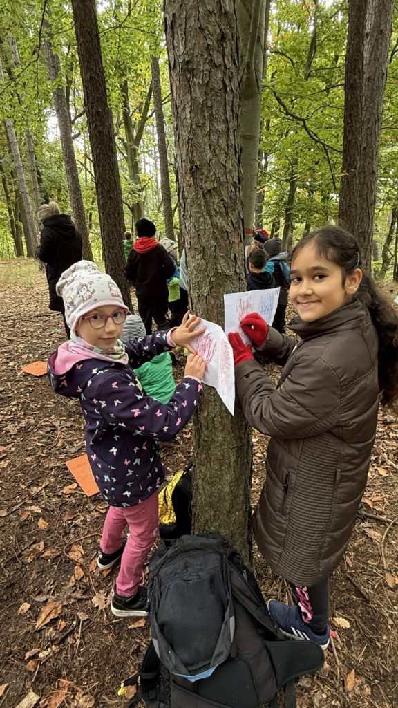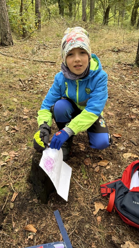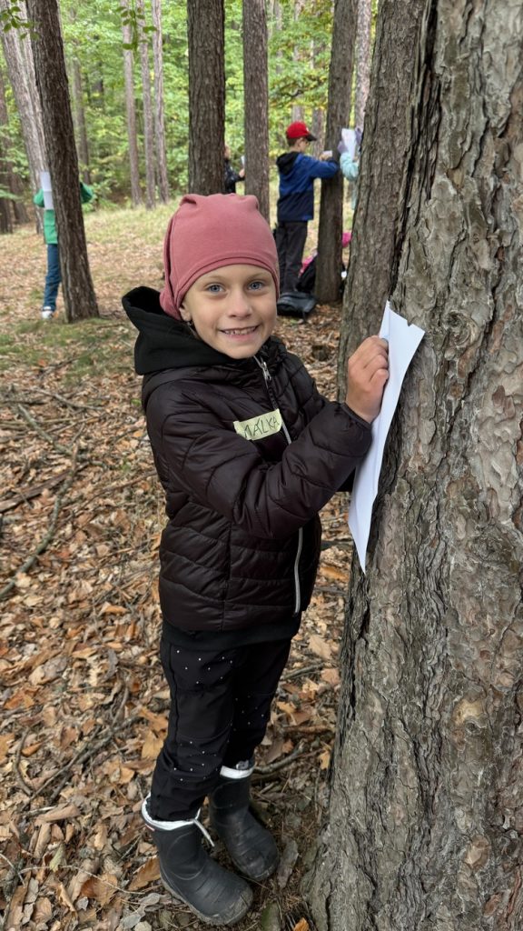 Na konci září jsme se vydali opět do chomutovských lesů, abychom si zopakovali stromy, jejich listy, plody, ale také se dozvěděli něco nového a zajímavého. Martina si pro nás připravila různé hry. Luštili jsme křížovku, poznávali nejen stromy, ale i jejich listy, třídili je, a přitom museli v týmech spolupracovat. Také jsme si zkusili frotáž kůry stromu, ale to pro nás novinka nebyla. Dozvěděli jsme se, že dříve se z břízy vyrábělo univerzální lepidlo. Také už víme, že jedlová šiška ze stromu nespadne, ale rozpadne se. A víte, jaké stromy v lese mají nejvíce barevné listy? Zkuste se pozorně dívat, až půjdete na procházku. Mají listy nejen žluté, oranžové, ale zbarvené i dočervena.
