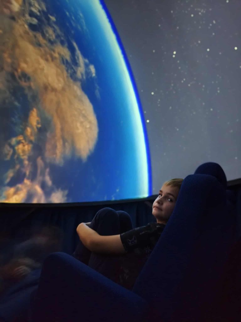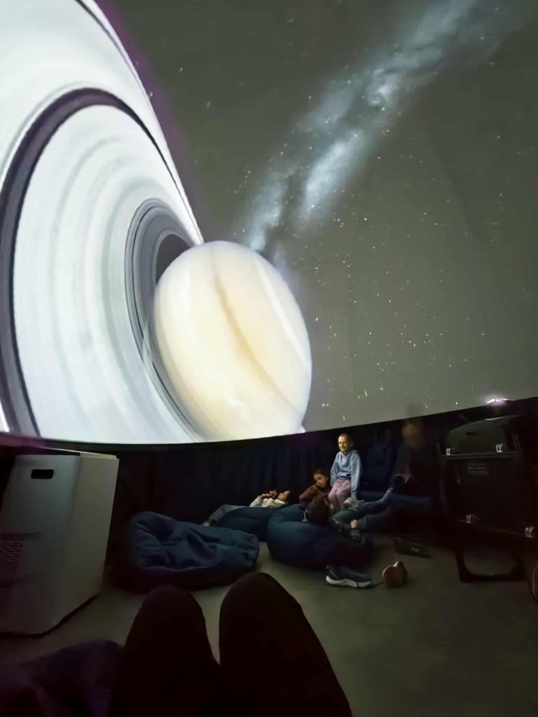 První část programu s názvem Dinosauři: Příběh přežití se odehrávala v projekci Digitária. Průvodkyní nám byla malá a zvídavá dívka Celesta, která nás vzala na neuvěřitelnou cestu časem. Společně jsme objevovali, jak dinosauři žili, co jedli, jak se pohybovali a co vedlo k jejich zániku. Projekce byla plná barev, pohybu a napětí.