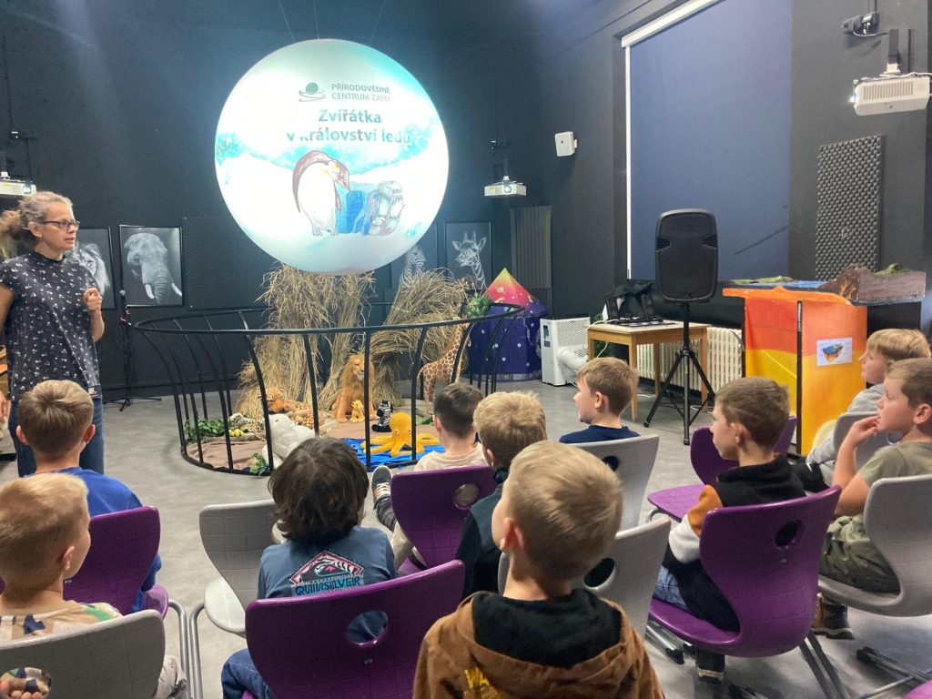 Po svačině nás čekalo „Království ledu“. Tam jsme se seznámili se zvířátky, která žijí v mrazu a sněhu. Viděli jsme, jak se žije tuleňům, tučňákům nebo ledním medvědům, jak vypadají jejich mláďata, jakým způsobem loví i jak se chrání před zimou.