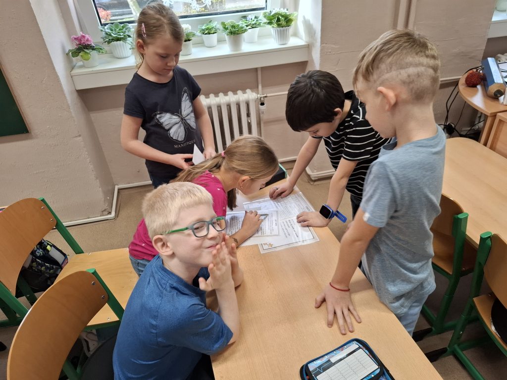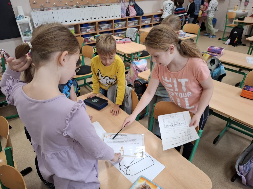 Matematická zdatnost byla prověřena na druhém stanovišti. Žáci počítali ikonické symboly svátku – husy, rohlíčky, lucerny.