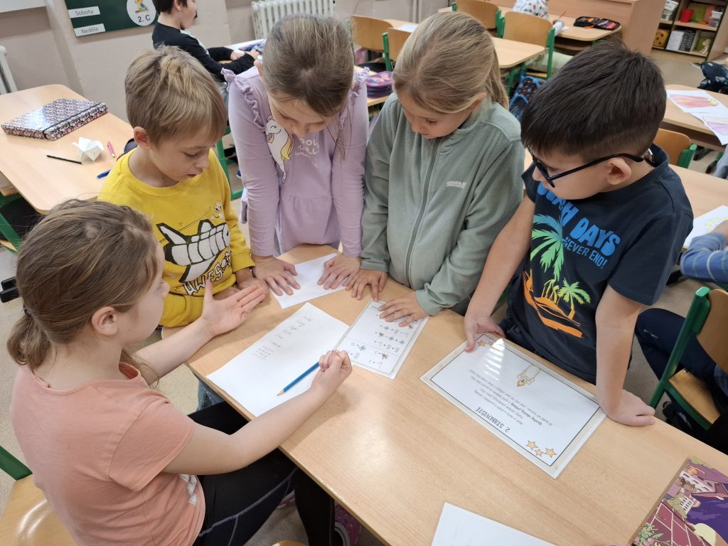 Poslední stanoviště vyžadovalo bystré hlavičky. Žáci luštili slovní přesmyčky, které ukrývaly názvy spojené se svátkem a zimou. Úspěšné rozluštění jim zajistilo poslední část kódu.