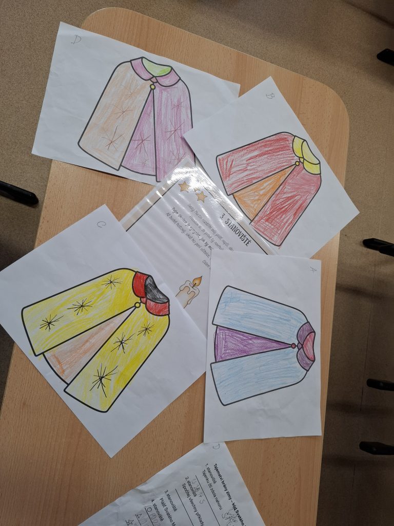 U třetího úkolu se probudila kreativita. Děti navrhovaly plášť pro svatého Martina.