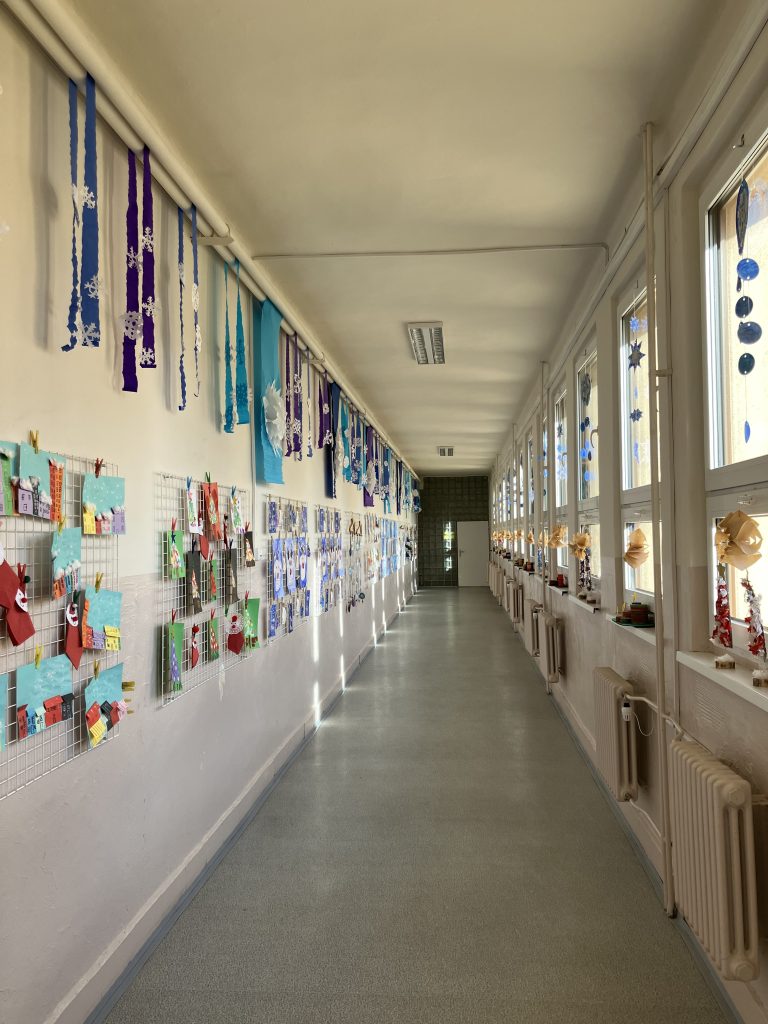 Školní družina se pustila do kouzelného úkolu. Vánočně jsme vyzdobili celou spojovací chodbu naší školy, která nyní doslova září sváteční atmosférou. Na výzdobě se podílelo všech šest oddělení družiny a děti ve věku od šesti do deseti let vytvořily působivou směs sněhových vloček, barevných hvězd a dalších veselých zimních motivů. Asi největší pozornost poutá vánoční strom plný tajných přání. Chodba se díky práci dětí proměnila v místo plné tvořivosti, radosti a očekávání blížících se svátků.