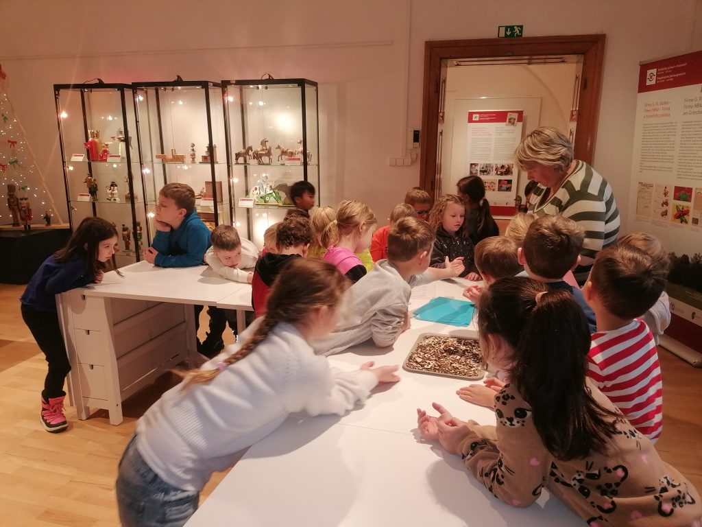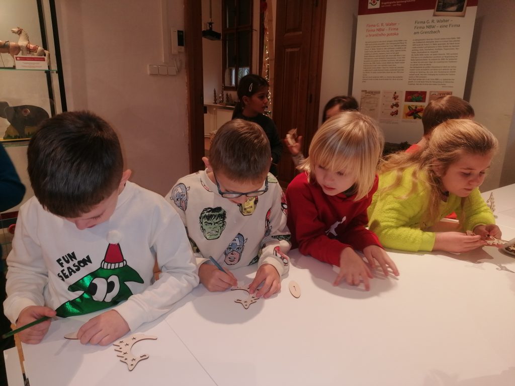 S prvňáčky jsme si vyrazili na adventní procházku do centra města. Konkrétně do chomutovského muzea na „vánoční tvoření“. Na výstavě jsme zhlédli také krušnohorské ozdoby, louskáčky, lucerničky a dozvěděli jsme se něco o historii vánočních ozdob.