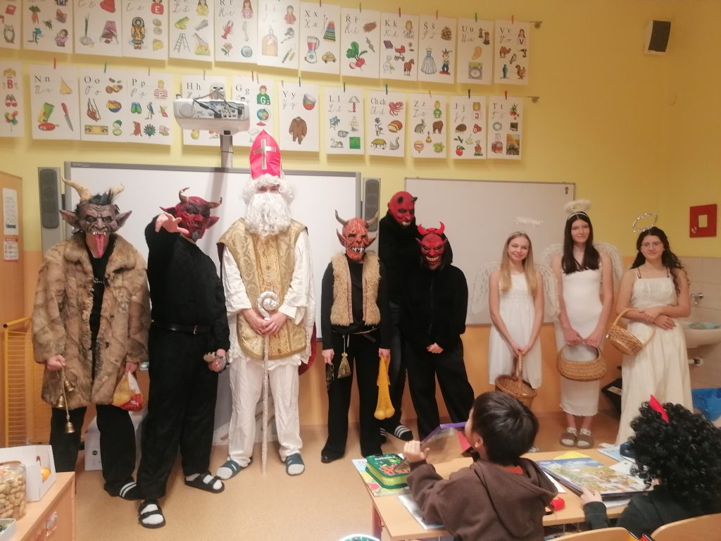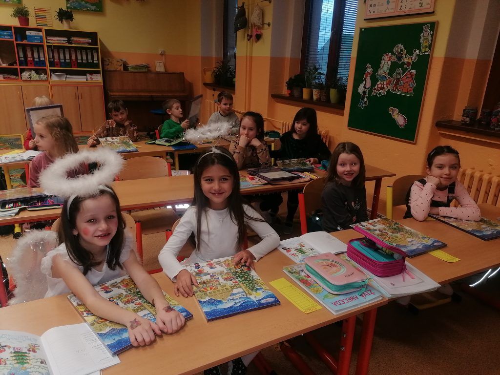 Také nás v tomto čase ve třídě navštívili čertíci, andílci i Mikuláš a za naše básničky nás odměnili čokoládovým kalendářem.