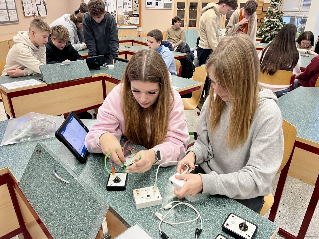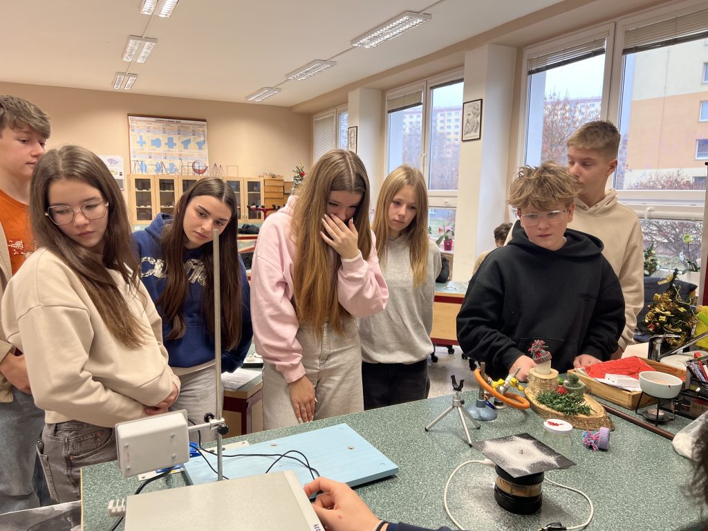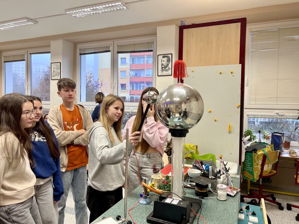 V úterý 16. 12. se naše žákyně z 9. ročníku zúčastnily Brainshopu na ZŠ Heyrovského. Téma? Elektromagnetismus a zvukové jevy – a rozhodně to nebyla žádná nuda! 🧲🎶