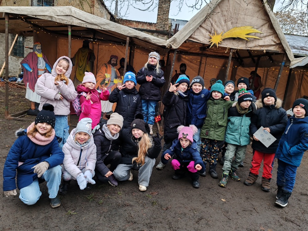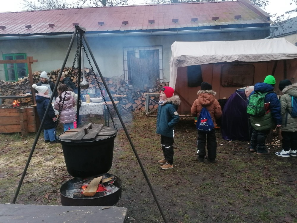 Společně naši žáci viděli mnoho krásných zvyků a tradic. Vyzkoušeli jsme si věštění z hrníčků, které pro nás bylo velmi napínavé. Vyráběli jsme vánoční svícny a pozorovali práci kováře. U Ježíškovy pošty bylo vždycky plno. Líbilo se nám vánoční divadélko, při kterém jsme si zahřívali ruce vánočním dětským punčem. Ochutnali jsme maso na klacku, po kterém se nám dělaly boule za ušima. Nakonec jsme si zahráli vánoční kvíz.