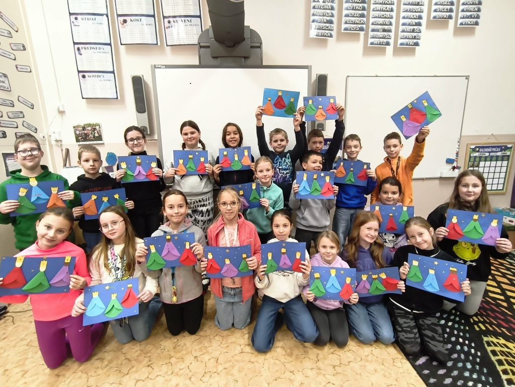 Nejprve jsme si pomocí videa připomněli, kdo byli tři mudrci z východu, proč se jim říká Kašpar, Melichar a Baltazar a jaké dary přinesli malému Ježíškovi. Dozvěděli jsme se také, proč 6. ledna chodí koledníci, zpívají a na dveře domů píší známý nápis K+M+B. V hodině českého jazyka jsme si své nové i staré vědomosti ověřili v kvízu. V matematice jsme se nezalekli počítání, a aby nám šla práce lépe od ruky, zazpívali jsme si tříkrálovou píseň. Nechybělo ani tvoření – každý si vyrobil vlastní tři krále, kteří se opravdu povedli.