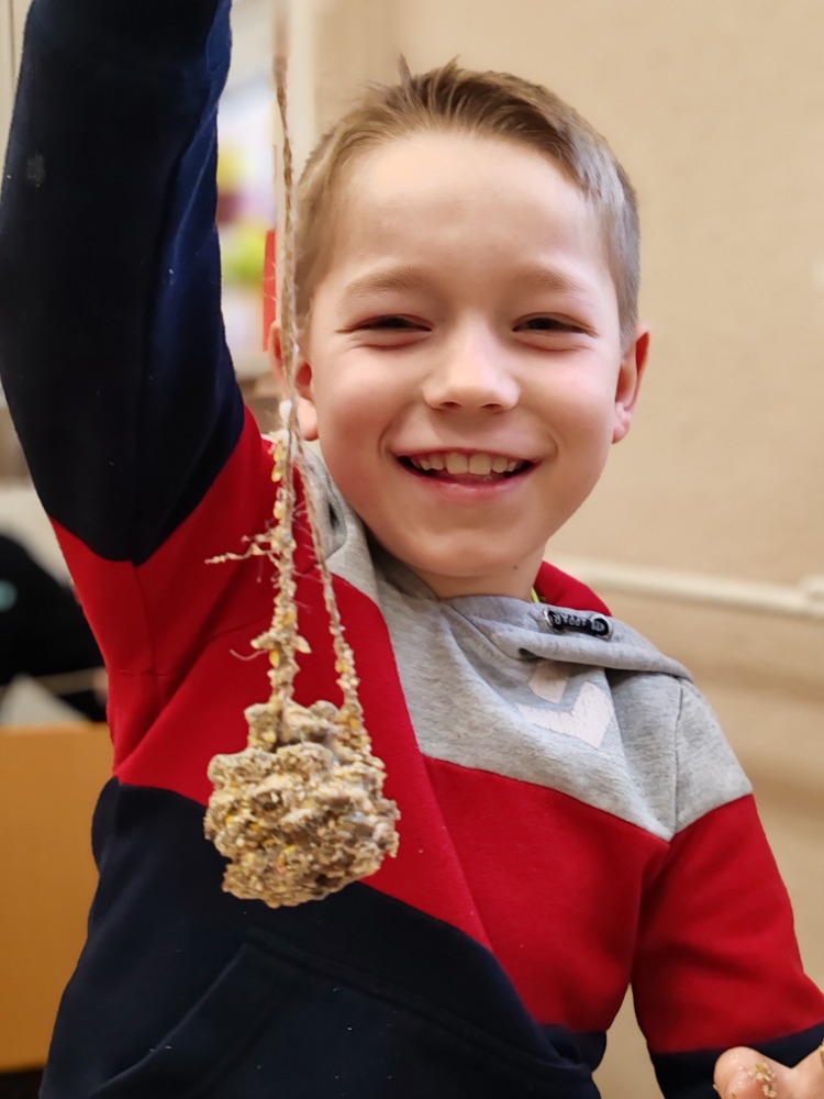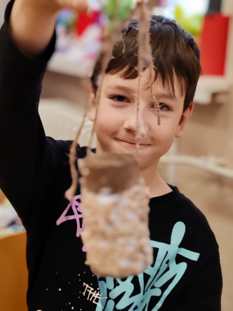 V naší třídě 2. B jsme si užili ptačí hodinku, během které jsme se učili poznávat ptáky stálé i tažné a povídali si o tom, jak ptáčci přežívají zimu ve volné přírodě. Dozvěděli jsme se, čím je správné ptáčky v zimě krmit a proč je pro ně naše pomoc důležitá. Společně jsme si vyrobili jednoduchá ptačí krmítka ze šišek, sádla a zobání, která jsme si připravili na zavěšení do přírody.