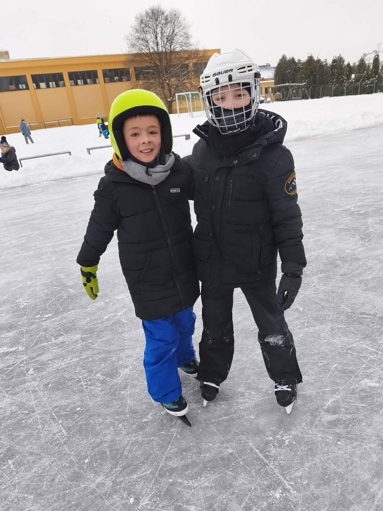 Společně s paní učitelkou jsme si vzali brusle a vyrazili na ledovou plochu na školním hřišti. Tu pro nás pečlivě připravil pan učitel Chalupa a pan školník Janouškovec, kterým tímto moc děkujeme – díky jejich práci jsme si mohli sportování opravdu naplno užít. Na ledě jsme bruslili, zkoušeli rovnováhu a hlavně se hodně smáli. Kromě bruslení jsme si užili i radovánky ve sněhu, stavěli jsme sněhuláky a hráli si venku s kamarády.