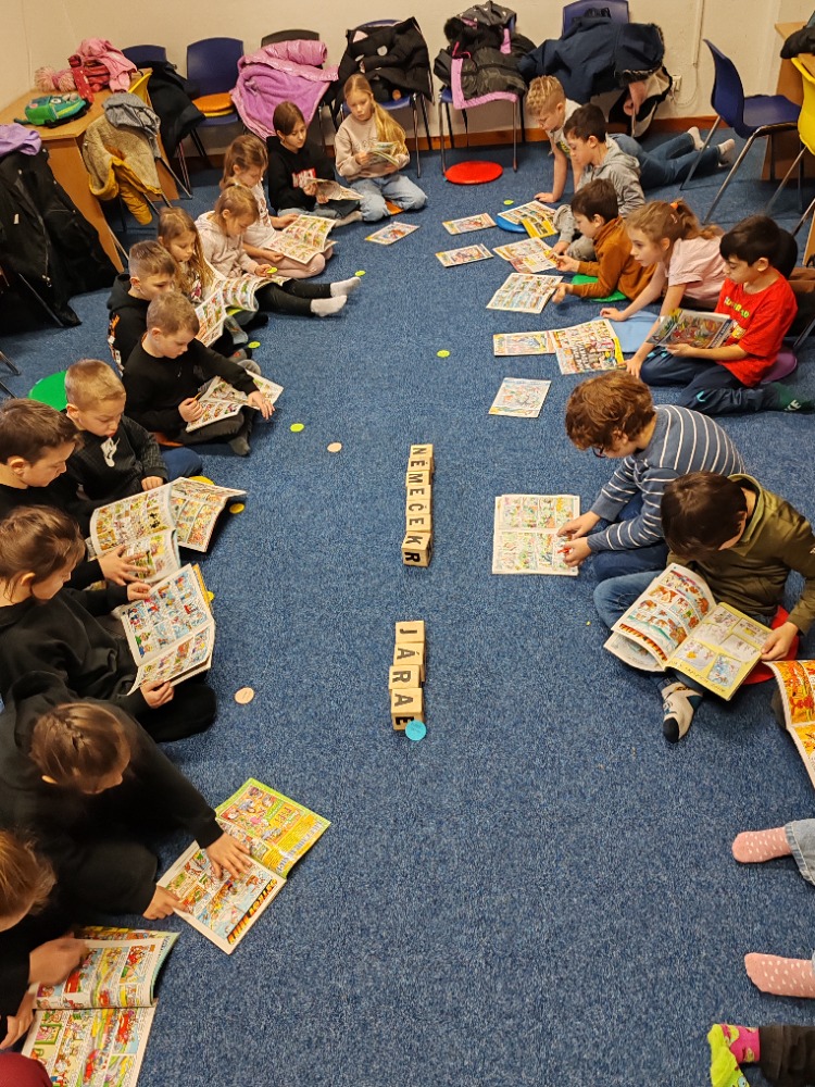 Ve třídě 2. B jsme si v posledních dnech povídali o oblíbeném českém komiksu Čtyřlístek. Dozvěděli jsme se, že jeho autorem obrázků je Jaroslav Němeček a že první díly vyšly už v roce 1969. Povídali jsme si také o úplně prvních příbězích, které se odehrávaly ve Třeskoprskách a rychle si získaly spoustu čtenářů.