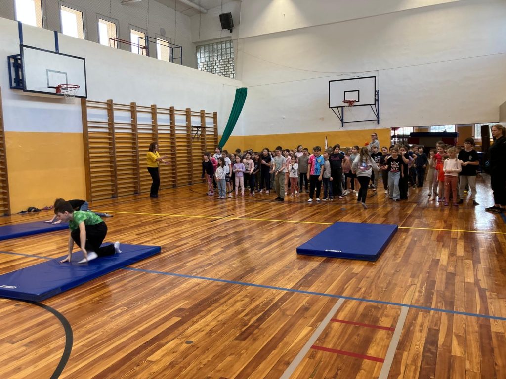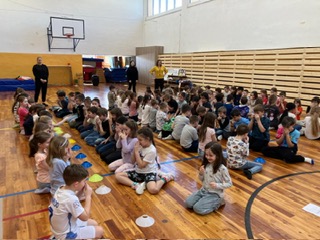 Pak už jsme se přesunuli do velké tělocvičny, a jako na správné a opravdové olympiádě jsme i my hry zahájili olympijským ohněm, olympijskou hymnou a poté i olympijským slibem. Poté už se děti vrhly na jednotlivé disciplíny, které připomínaly některé disciplíny olympijské, například boby.