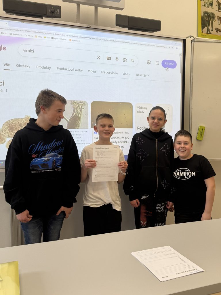V následující hodině jednotlivé skupiny prezentovaly své poznatky a vyhodnotily, zda se jejich hypotézy potvrdily. Aktivita žákům umožnila nejen procvičit práci s mikroskopem, ale především zažít radost z vlastního objevování a lépe porozumět principům vědecké práce.