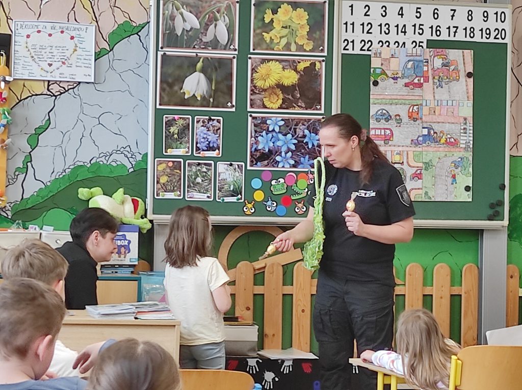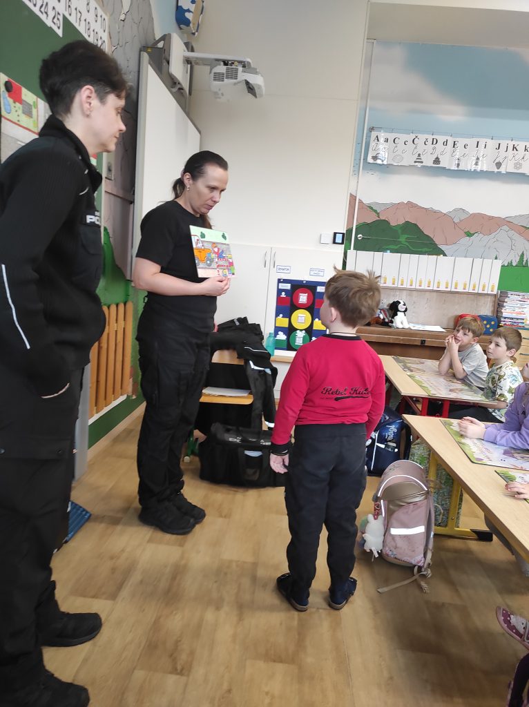 Děti si připomněly, jak se mají jako chodci pohybovat, na co si dávat pozor a proč je důležité být opatrný v silničním provozu. Další část programu byla zaměřena na osobní bezpečí. Pomocí krátkých scének si žáci vyzkoušeli, jak reagovat v situaci, kdy je osloví cizí člověk. Naučili se, že si nikdy nesmí vzít například bonbon nebo jiný dárek od neznámé osoby a že s cizím člověkem nikam neodcházejí. Návštěva městské policie byla pro děti velmi poučná i zábavná. Odnesly si mnoho důležitých informací, které jim pomohou chovat se bezpečně v každodenním životě.