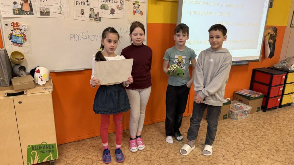 V úterý 10. března jsme měli ve třídě Plyšákový den. Naše mazlíčky jsme tajně nosili do černých pytlů. Byly umístěné ve třídě nebo v družině, aby je nikdo neviděl. Nejprve jsme si plyšáky očíslovali a vystavili je na lavičku. Plyšáky jsme popisovali, vymýšleli k nim slovní druhy nebo mezi nimi hledali savce, ptáky… V matematice jsme je vážili a měřili. Každému jsme pak vytvořili visačku, kde bylo uvedeno, kolik váží, měří, jak vypadá, jak se jmenuje a kolik korun stojí. Nejzábavnější bylo samotné odhalení plyšáků. Pomocí hry ANO – NE jsme zjišťovali, komu patří. Moc nás práce s našimi plyšovými mazlíčky bavila. Nakonec každý z nás napsal příběh o plyšákovi nebo ho popsal. Příběhy se nám opravdu povedly, dokonce byl jeden napsaný i z pohledu plyšáka! Byl to prima den!