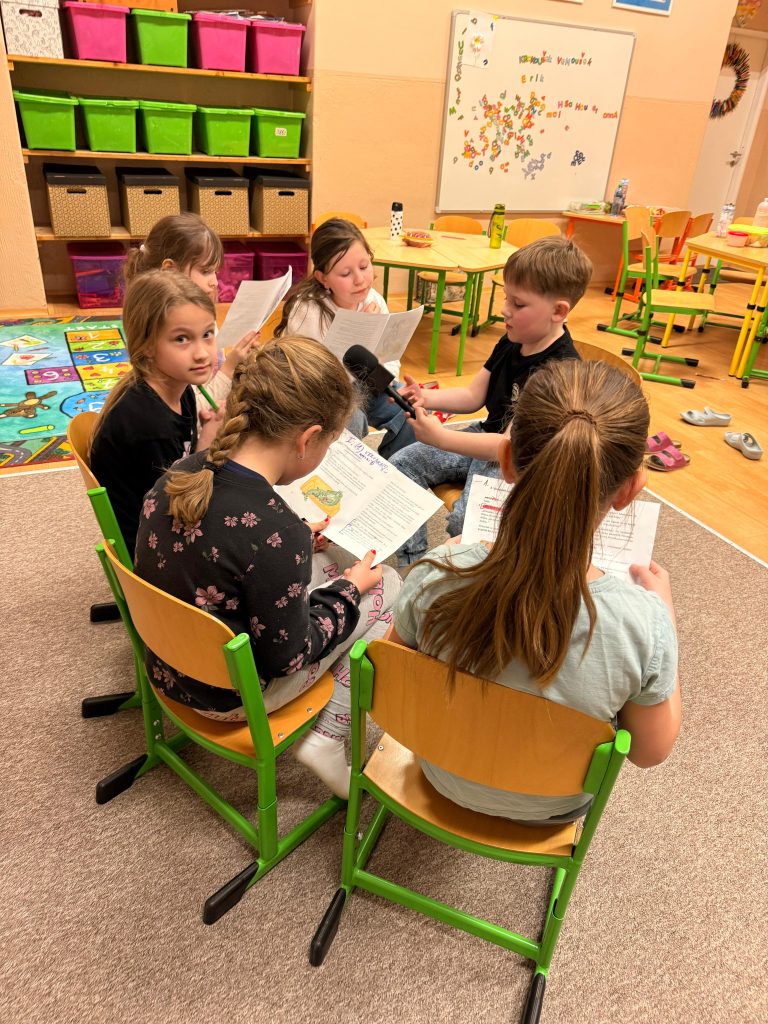 A program rozhodně nezklamal! Dostali jsme jedinečnou příležitost vyzkoušet si nahrávání audioverze kapitoly Krokoušek sportovcem. Pro mnohé z nás to byla úplně nová zkušenost – někdy nás přemohla tréma, jindy jsme se sami sobě smáli, ale všichni jsme se snažili a hlavně si to naplno užili.
