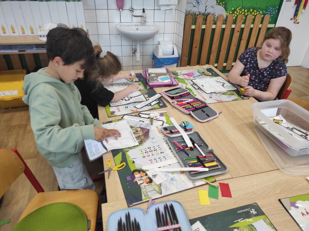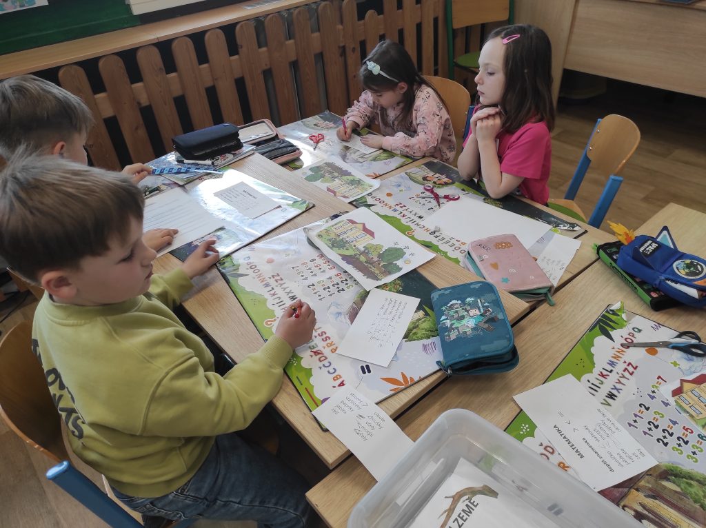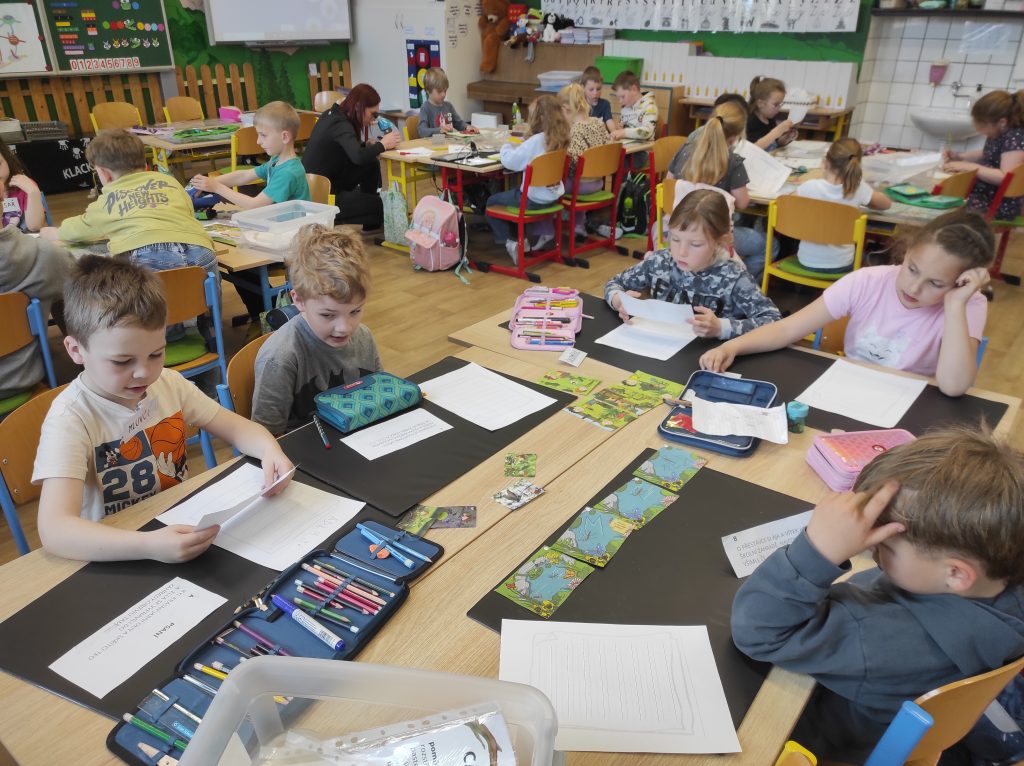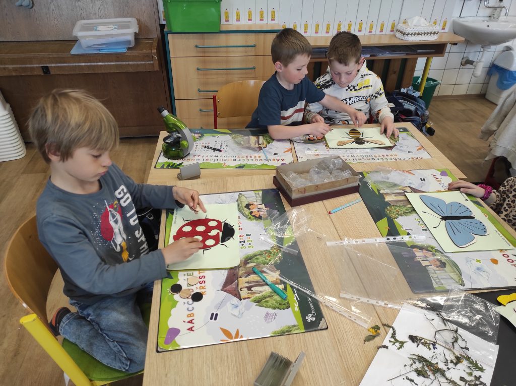 Prvňáčci se v průběhu čtvrtého dubnového týdne věnovali tématu Dne Země prostřednictvím různorodých aktivit. Každé ráno začínali řešením krátkého úkolu s přírodní tematikou, který je naladil na další práci. Společně jsme si povídali o třídění odpadu, o tom, co do přírody patří a co jí naopak škodí, a hledali jsme způsoby, jak můžeme naši planetu chránit. V centrech aktivit děti vyráběly „Kufřík první pomoci pro planetu Zemi“, kde zachycovaly nápady, jak přírodě pomáhat. Také psaly pohádku o skřítcích žijících v přírodě, čímž rozvíjely svou fantazii i vztah k okolnímu světu. Velký zájem vzbudilo pozorování pod mikroskopy – děti zkoumaly různé preparáty i živé rostliny a následně zakreslovaly, co vidí. Při běhacím čtení pak luštily hádanku, která jim pomohla odhalit, proč je naše planeta tím nejlepším místem k životu. Celý týden byl plný objevování a uvědomování si, jak důležité je o naši Zemi pečovat.