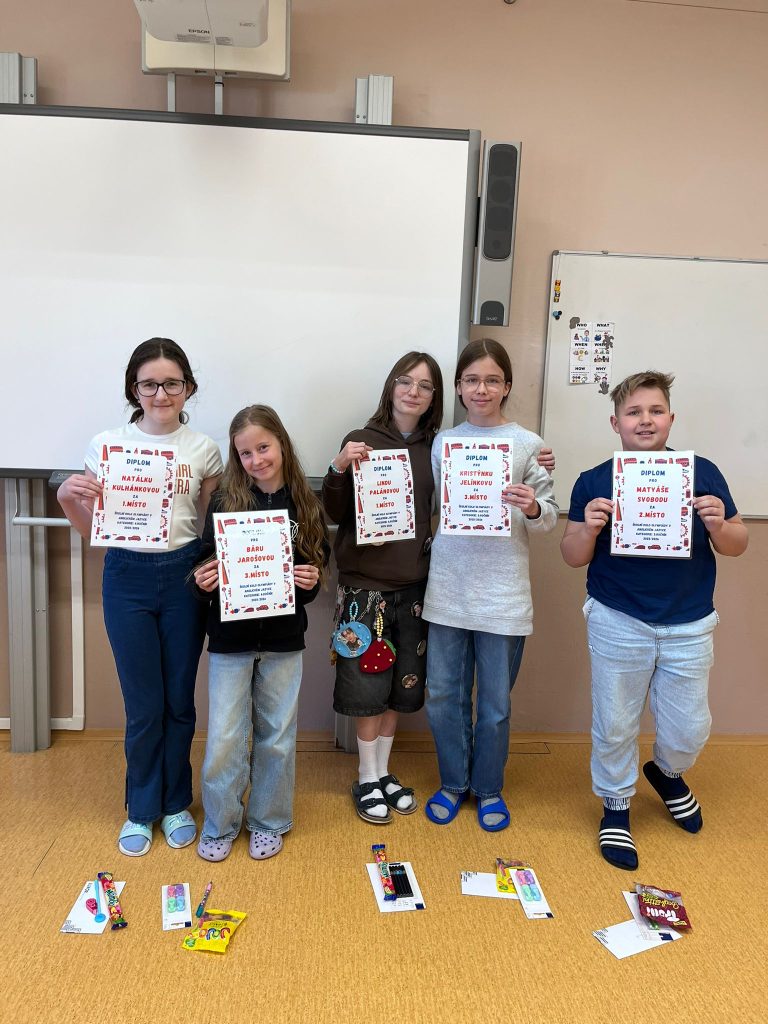 Všem soutěžícím děkujeme za jejich úsilí a chuť reprezentovat naši školu. Úspěšným žákům srdečně gratulujeme a přejeme, aby je angličtina bavila i nadále a přinesla jim ještě spoustu dalších úspěchů.