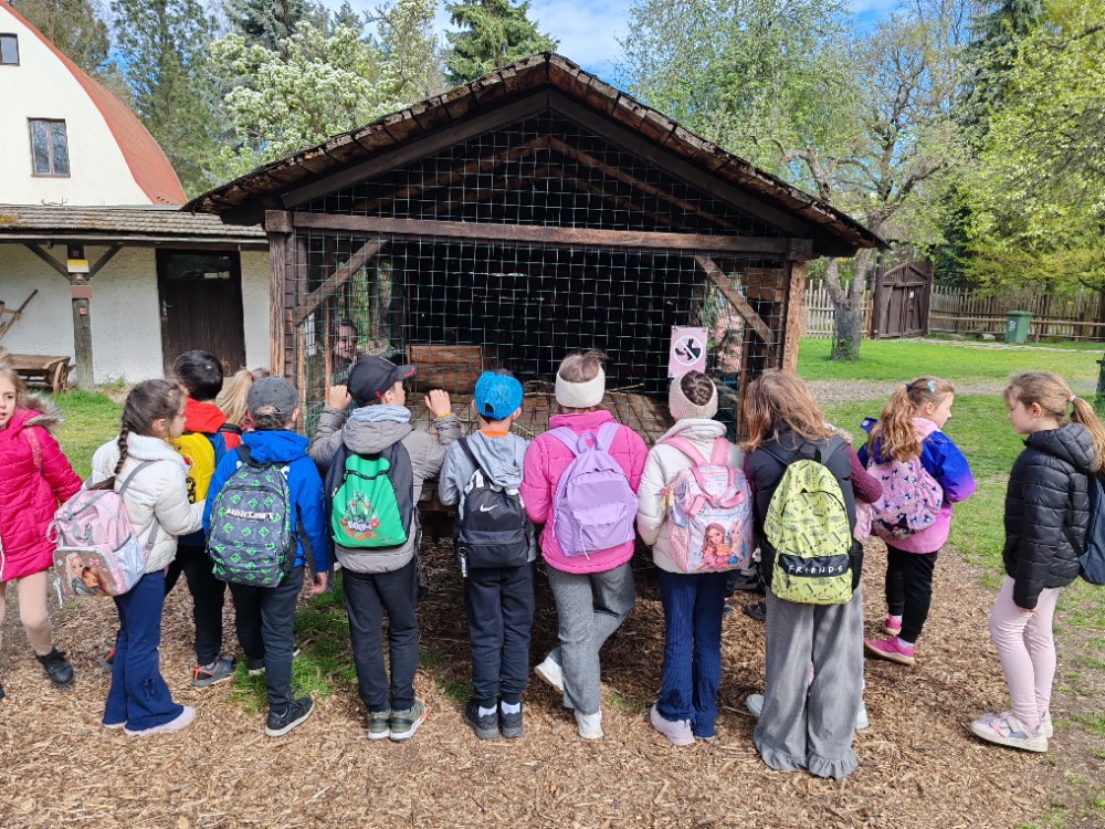 Ve čtvrtek 23. dubna se naše třída vydala na krásný jarní výlet do Zoo parku v Chomutově, kde měli žáci možnost poznat hospodářská i další zvířata pěkně zblízka. Nejprve zamířili na místní statek, kde s nadšením pozorovali kozy domácí s malými kůzlaty a ovce domácí s roztomilými jehňaty. Velkou radost jim udělala také morčátka, která si děti hned oblíbily pro jejich hebkou srst a milý vzhled. Z králíkárny na nás vykukovali malí králíčci.